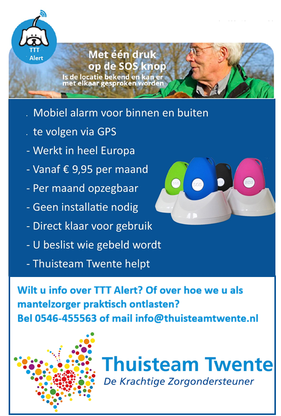 samen de zorg geven/verdelen. Met hulp van onder meer personenalarmering en valdetectie (via langer-thuis-pakket)